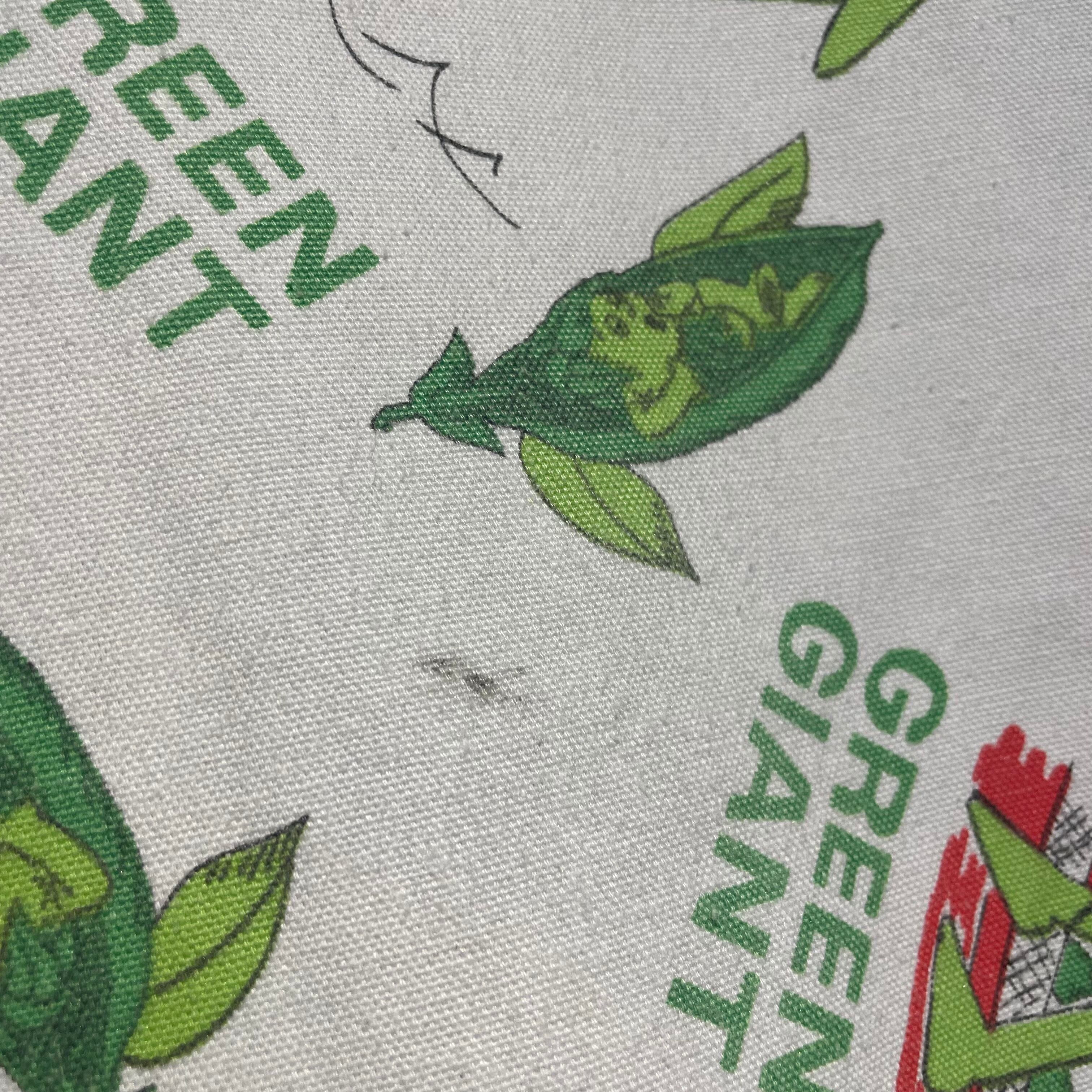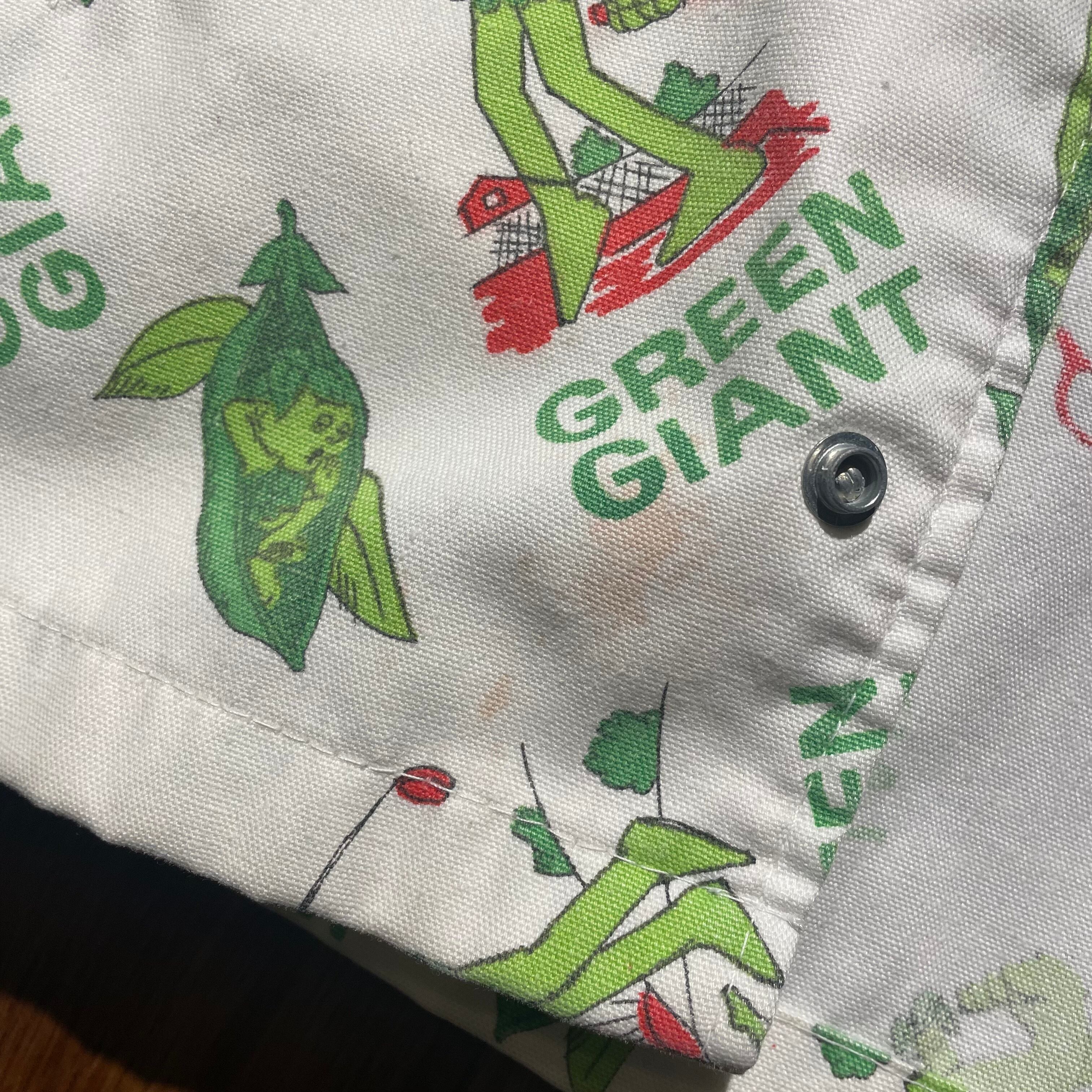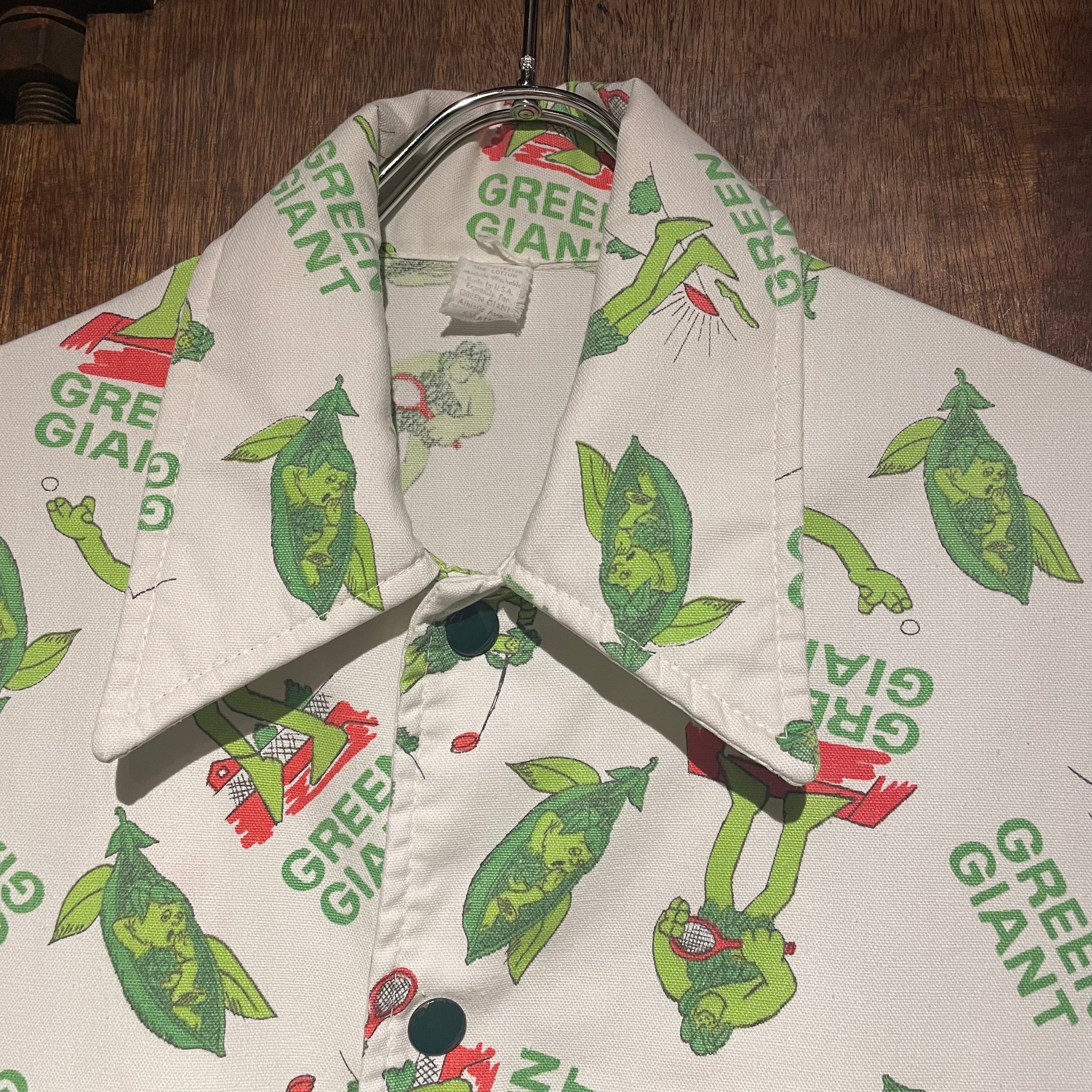 70年代のヒッピーカルチャーの雰囲気も漂うグリーンジャイアントとリトルスプラウトが描かれた総柄プリント。